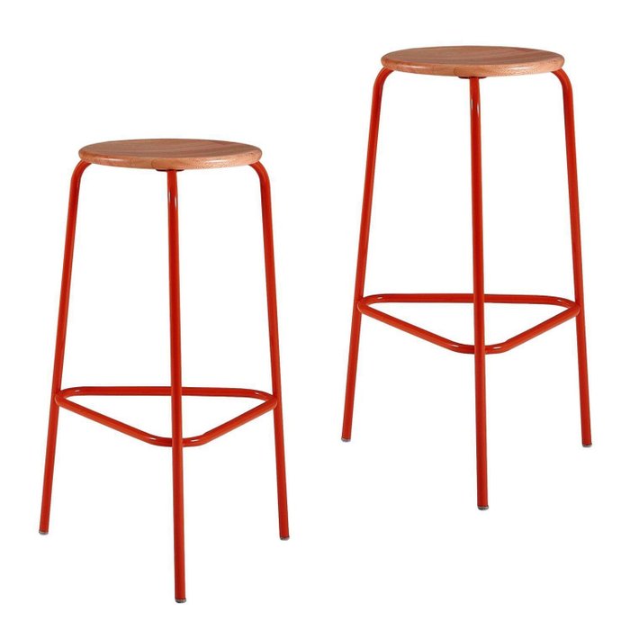 Kit 2 Banquetas para Cozinha com Base de Aço Cumbuca Vermelho/Nature