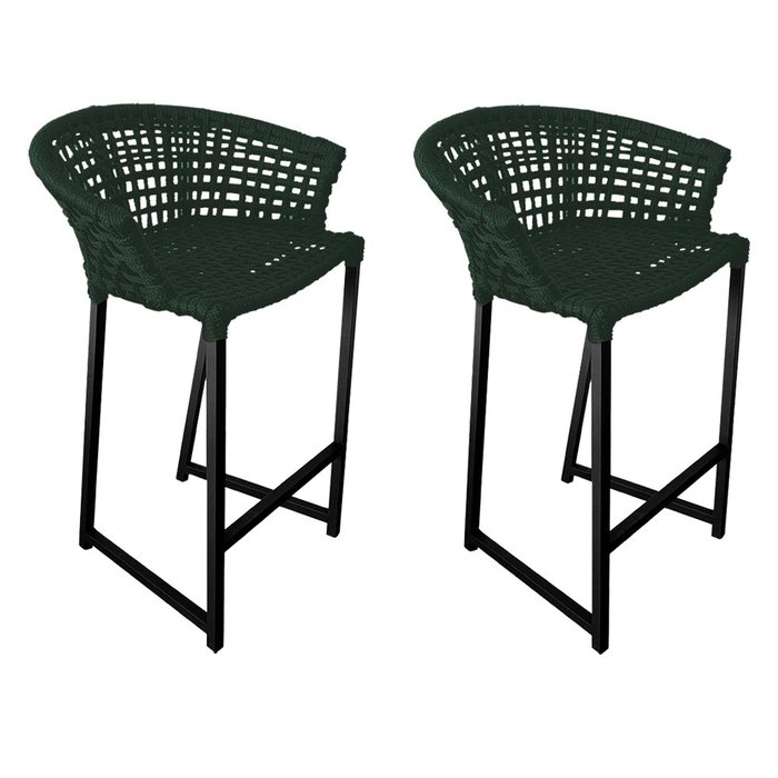 Kit 2 Banquetas Reis em Corda Náutica e Base em Alumínio Preta para Área Gourmet Verde Musgo VERDE