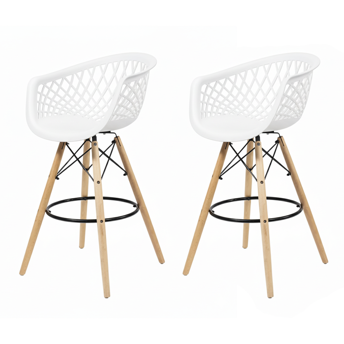 O assento em polipropileno de alta resistência oferece ergonomia e praticidade no dia a dia, enquanto a base em madeira natural com estrutura metálica aramada garante estabilidade, durabilidade e um visual elegante. O apoio para os pés em aço pintado proporciona mais conforto e segurança durante o uso, tornando-a ideal tanto para residências quanto para ambientes comerciais.