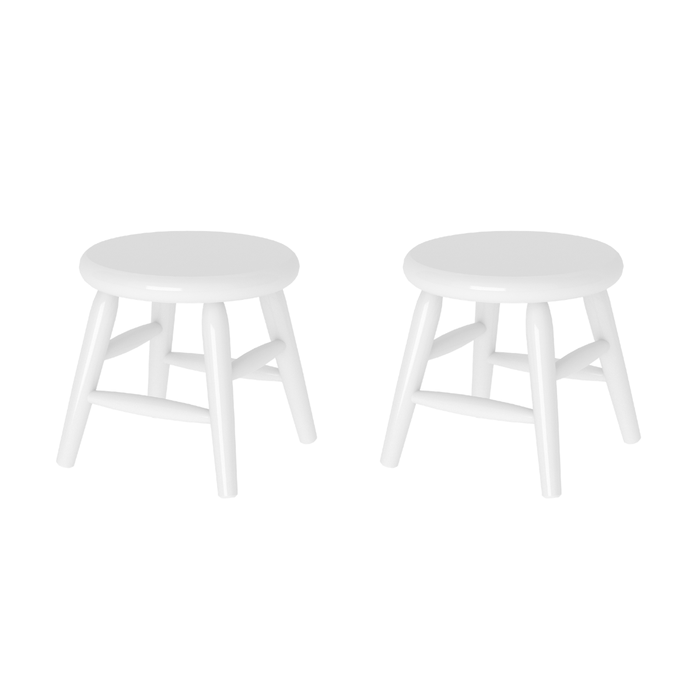 Kit 2 Banquinhos Redondos Torneados em Madeira Maciça Branco Acetinado