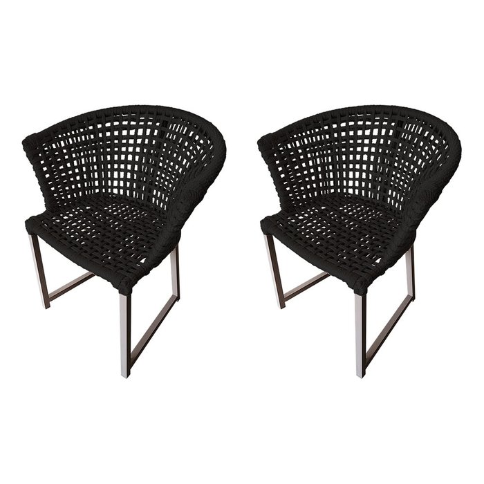 Kit 2 Cadeiras de Jantar Area Externa Salinas em Corda Naútica Base Alumínio Rami - Preta