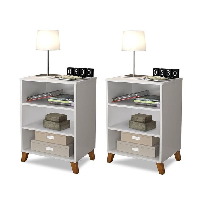 Kit 2 Criados de Cabeceira Retro Pes Palito 3 Nichos Branco