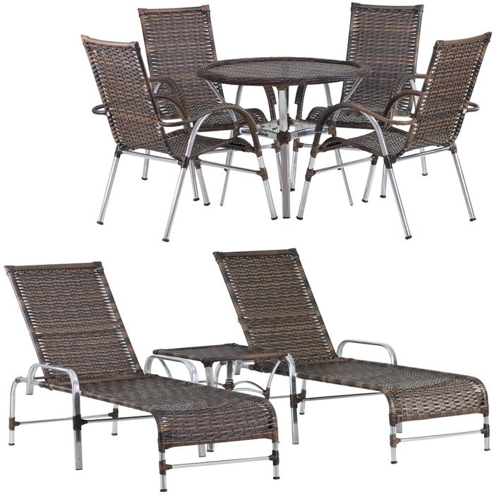 Kit 2 Espreguiçadeiras Catar 2 Mesas e 4 Cadeiras Vênus para Piscina, Varanda Trama Original