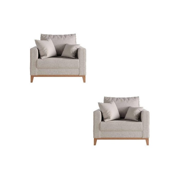 Kit 2 Poltrona Beny Pés e Base em Madeira Linho Cru - Fm