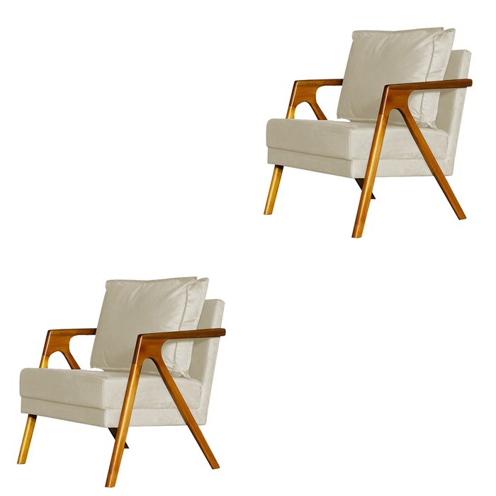 kit 2 Poltronas Cadeira Marilia Recepção - Linho Bege
