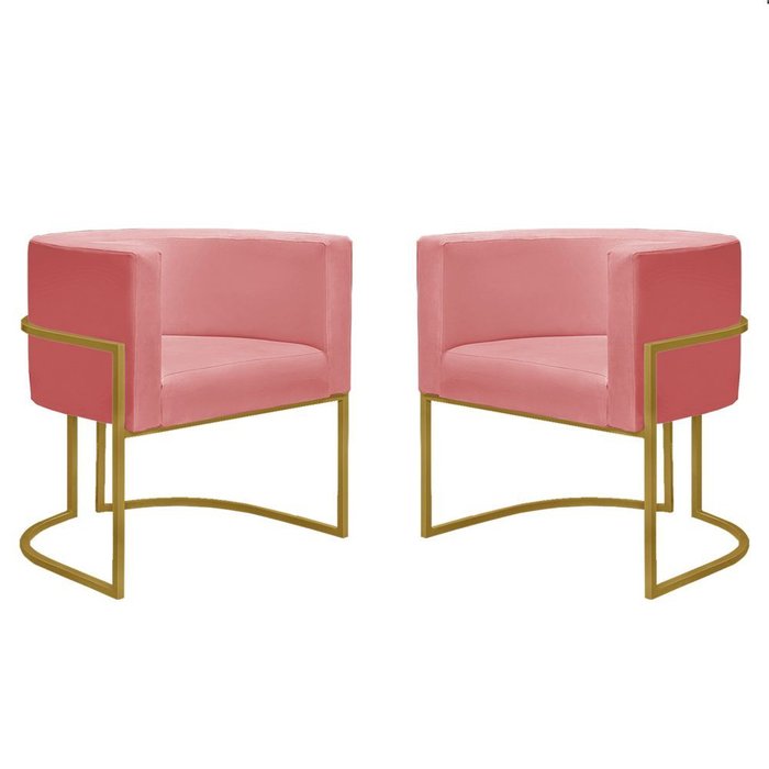 Kit 2 Poltronas Decorativa Nayara Base Ferro Dourado Twdecora Suede Rosê