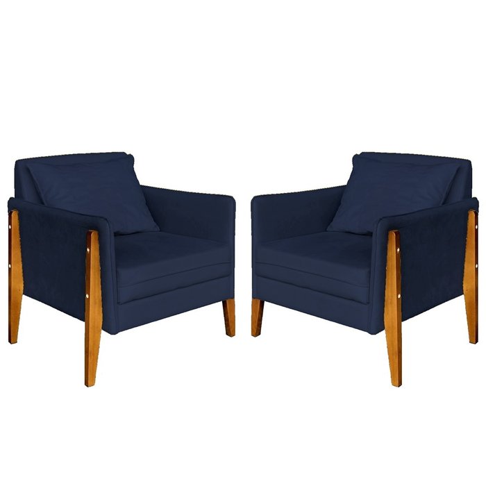 Kit 2 Poltronas Decorativa Sophia Suede Azul Marinho Pés Madeira Mz Decor