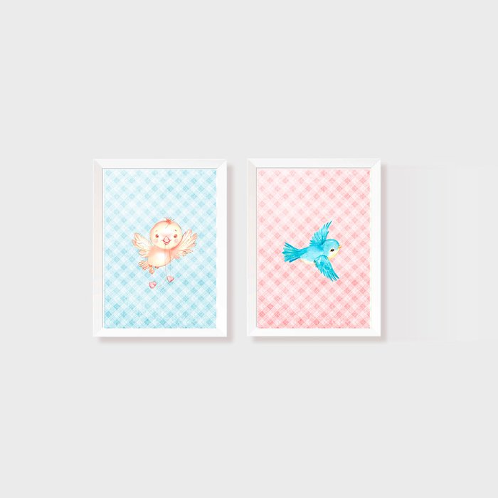 Kit 2 Quadros Aquarela Pássaros