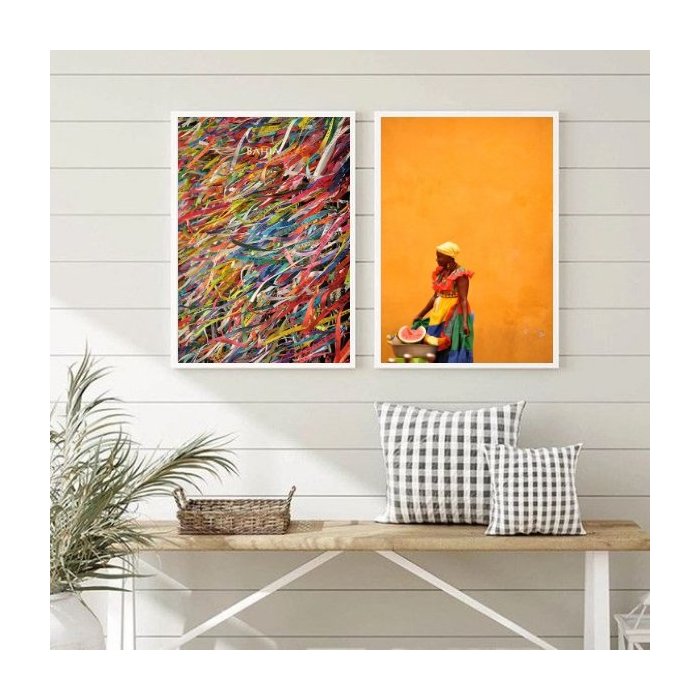 Kit 2 Quadros Decorativos Bahia- Fotografia Baiana 33x24cm:madeira Branca