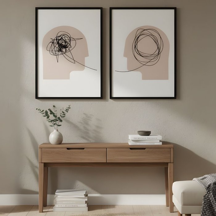 Kit 2 Quadros Psicologia Linhas da Mente 40x60 Moldura:preta preta