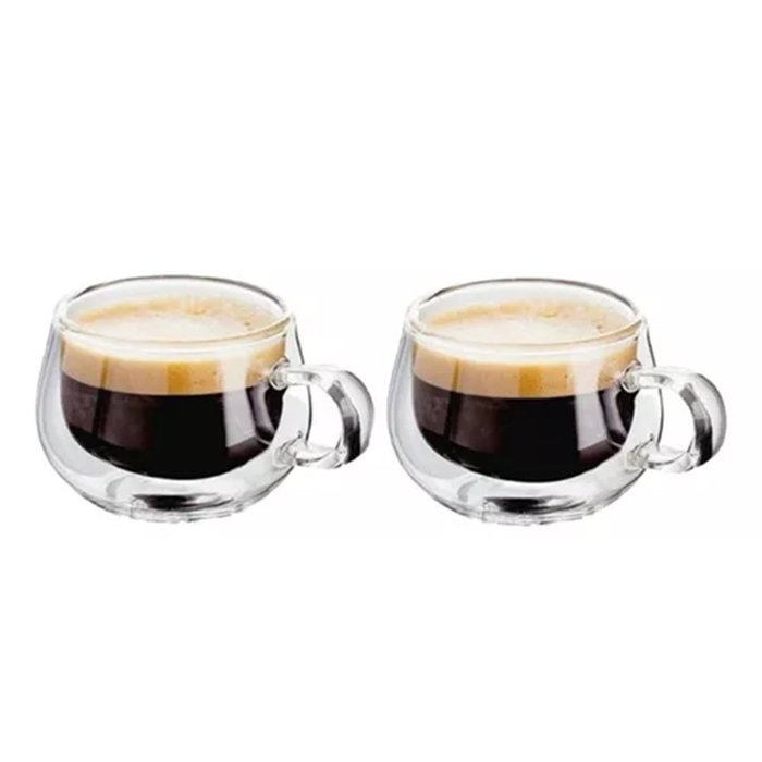 Kit 2 Xícaras Vidro Borossilicato Parede Dupla Chá 240ml