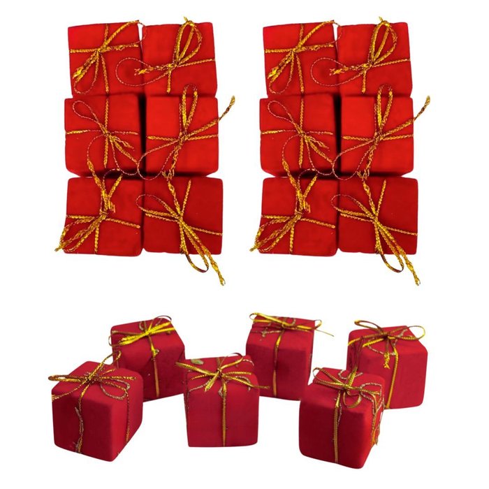 - 24 unidades Mini Presentes Decorados Natal Enfeite Árvore 3x3cm Vermelho e Dourado - Yangzi