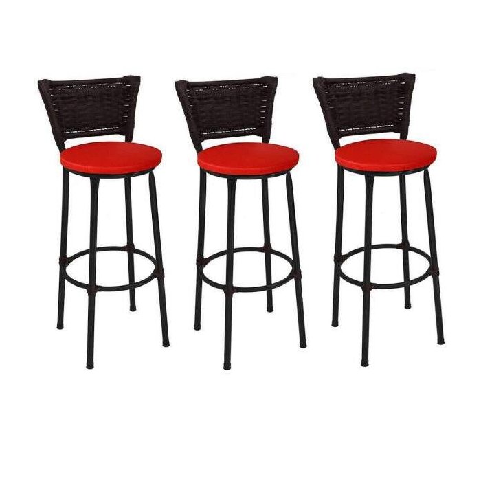 Kit 3 Banquetas Alta Preta Junco Argila com Assento Vermelho Fortmix