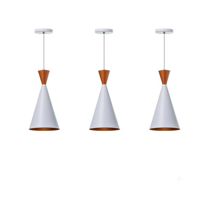 Kit 3 Lustre Pendente Interno Mesa Jantar Balcão Canadá: Branco topo Cobre Branco