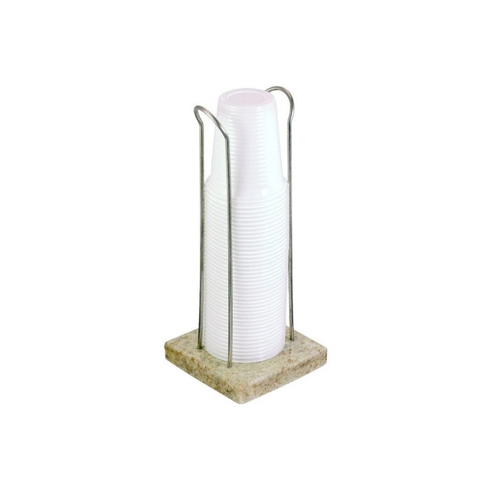 Suporte com base de granito (cores sortidas), hastes laterais confeccionadas em arame de aço inox que mantém os copos organizados.