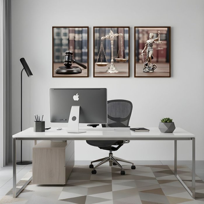 Kit 3 Quadros Justiça Advocacia 40x60 Moldura:tabaco