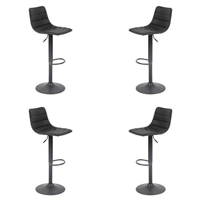 Kit 4 Banquetas Decorativas Travis Pu com Regulagem de Altura Base Disco C/apoio para Os Pés Preto G Preto