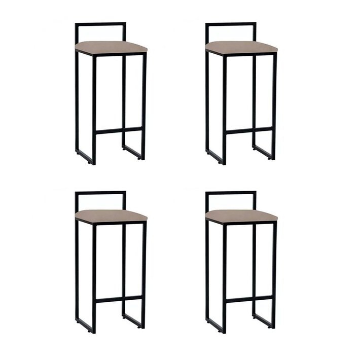 Kit 4 Banquetas Altas Industriais Em Aço Dori Preto Assento Suede Bege