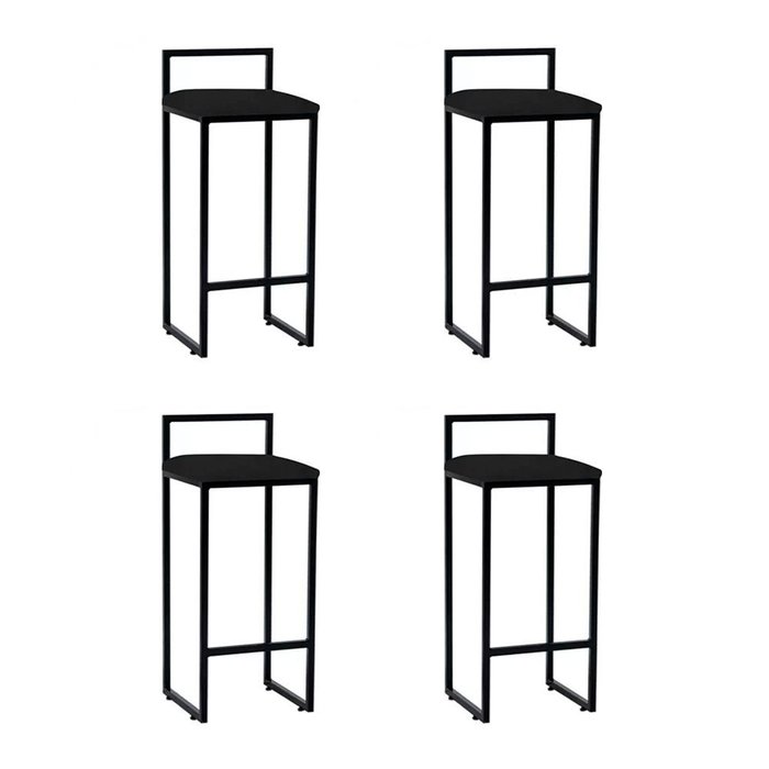 Kit 4 Banquetas Altas Industriais Em Aço Dori Preto Assento Suede Preto
