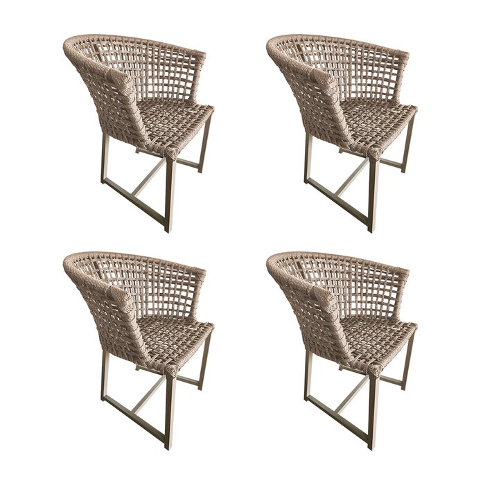 Kit 4 Cadeiras de Jantar Salinas em Corda Naútica Champanhe Base Alumínio Rami Champanhe