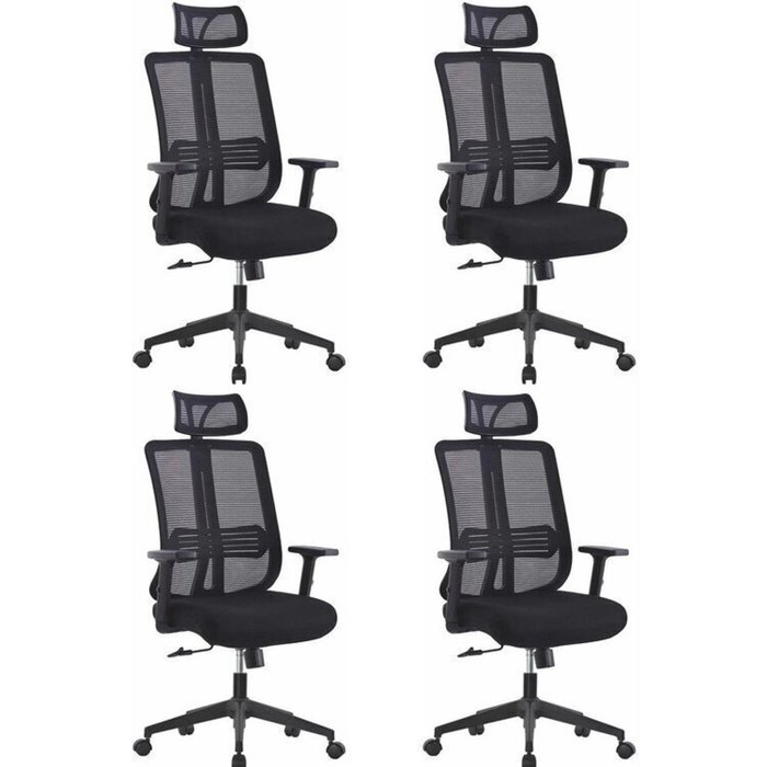 Kit 4 Cadeiras para Escritório Presidente Tela Mesh Comfort Plus Preto