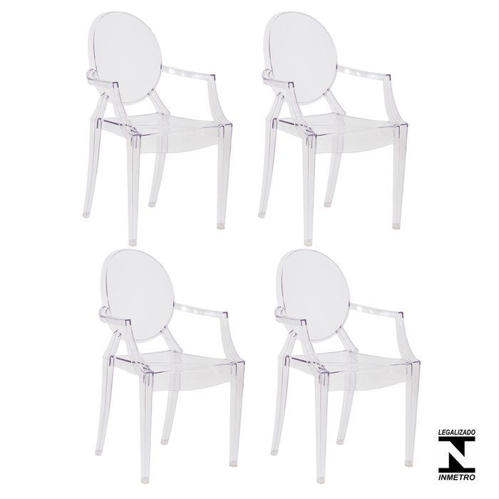 Kit 4 Cadeiras para Mesa de Jantar Cozinha Sala Escrivaninha Sofia Louis Ghost Transparente