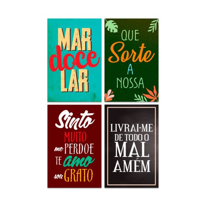Kit 4 Placas Decorativas Frases Motivacional Mdf 20x30 cm Colorido