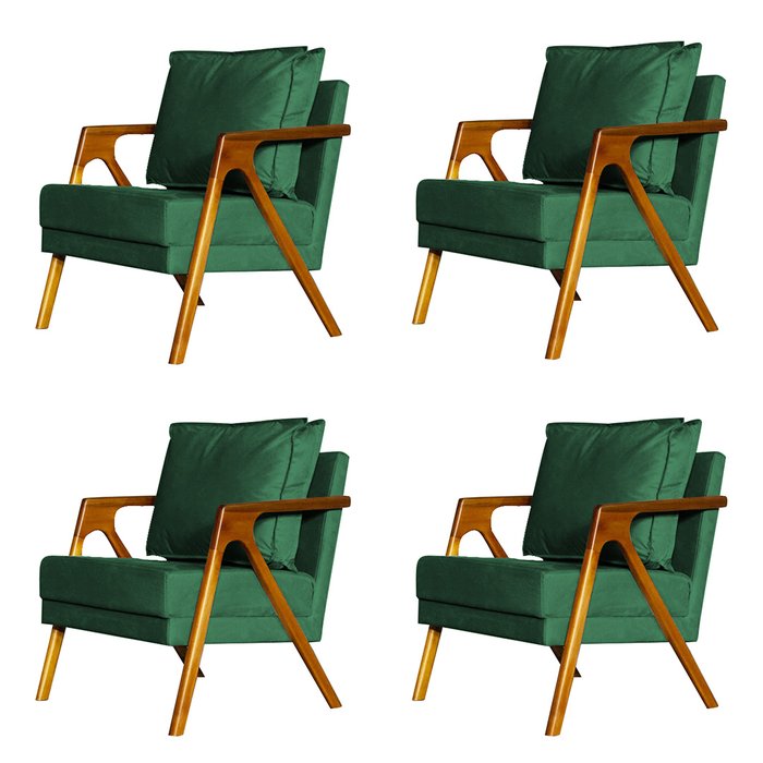 Kit 4 Poltronas Cadeira Marilia Recepção - Veludo Verde