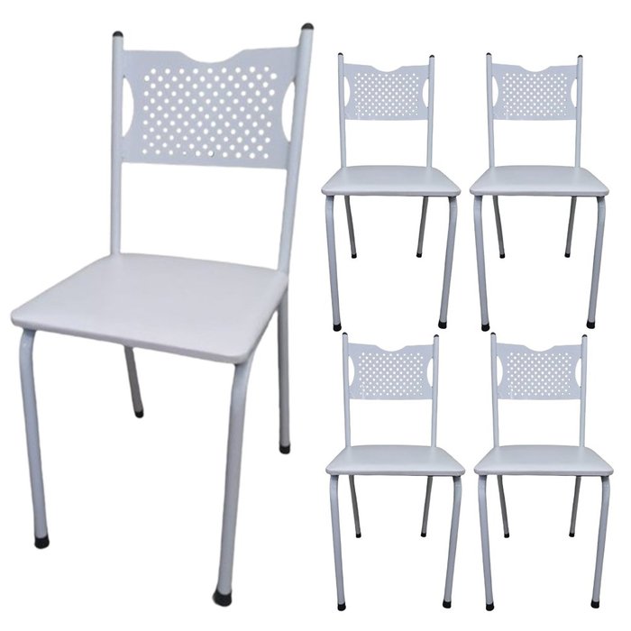 Kit 5 Cadeira para Cozinha Mc Tubular Almofadada Estrutura Branca com Assento Branco Medcombo