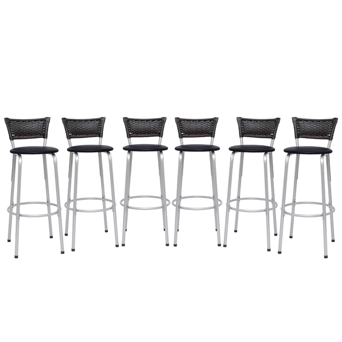 Kit 6 Banquetas Alta Banco para Balcão Junco Preto Àrea Gourmet Ilha Bancada bares Churrasqueira Preto