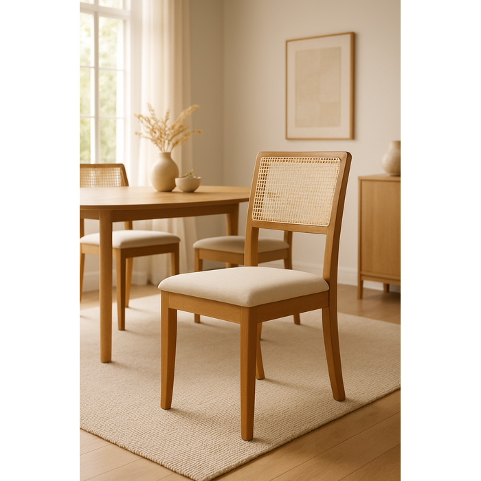 Kit 6 Cadeiras de Jantar Palha Estofadas Linho Bege com Tela Rubi Premium Madeira Maciça Mel