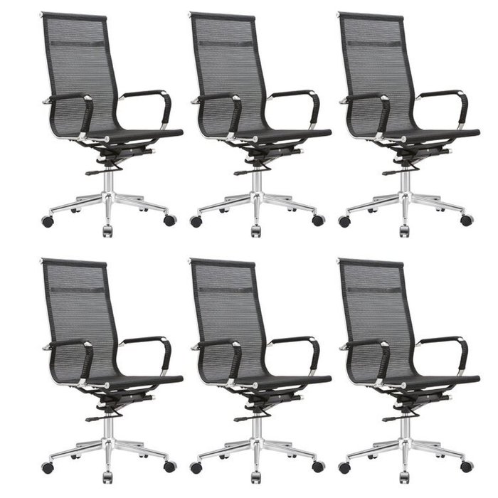 Kit 6 Cadeiras Escritório Interlocutor Fixa Aço Cromado Sidney