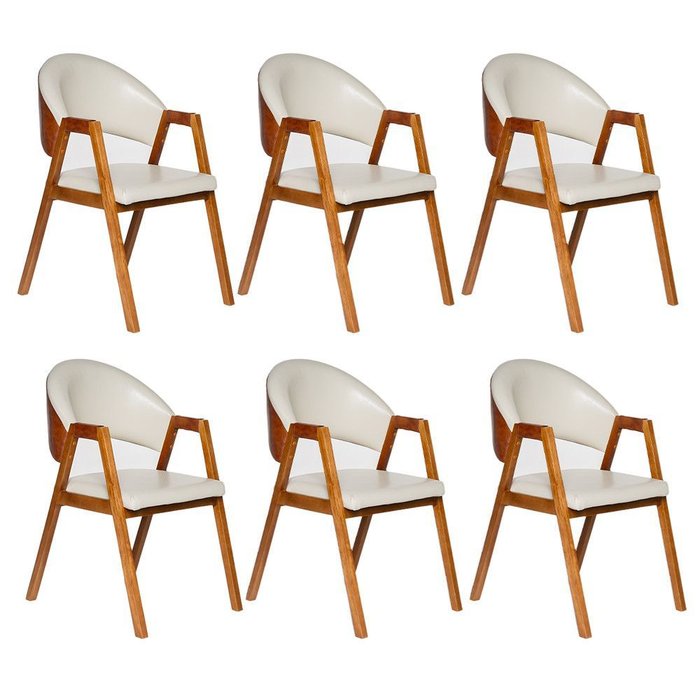 Kit 6 Cadeiras Luiza Sala de Jantar com Braço Madeira Maciça Movellu Home Corino Creme/Corino Marrom