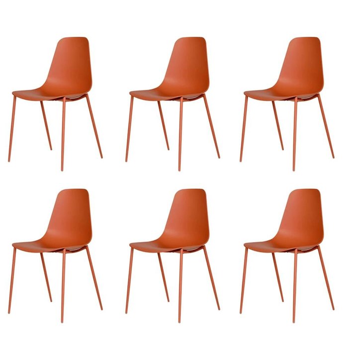 Kit 6 Cadeiras Miami Abi Fratini Polipropileno Cor Terracota Base em Aço com Pintura Epóxi