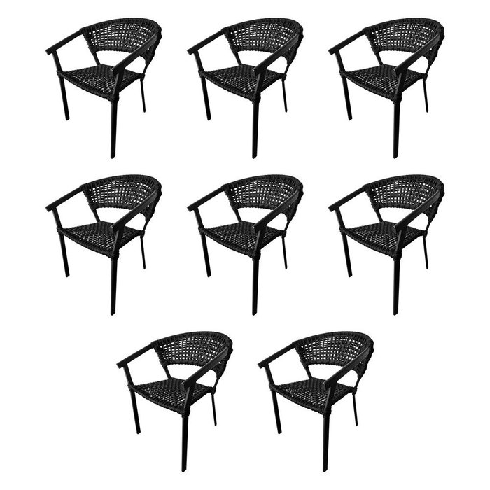 Kit 8 Cadeiras de Jantar em Corda Naútica Preta Base Alumínio Sofia Preto