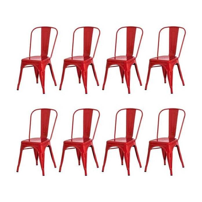 Kit 8 Cadeiras Tolix Iron Design Vermelha Aço Industrial Sala Cozinha Jantar Bar Vermelha