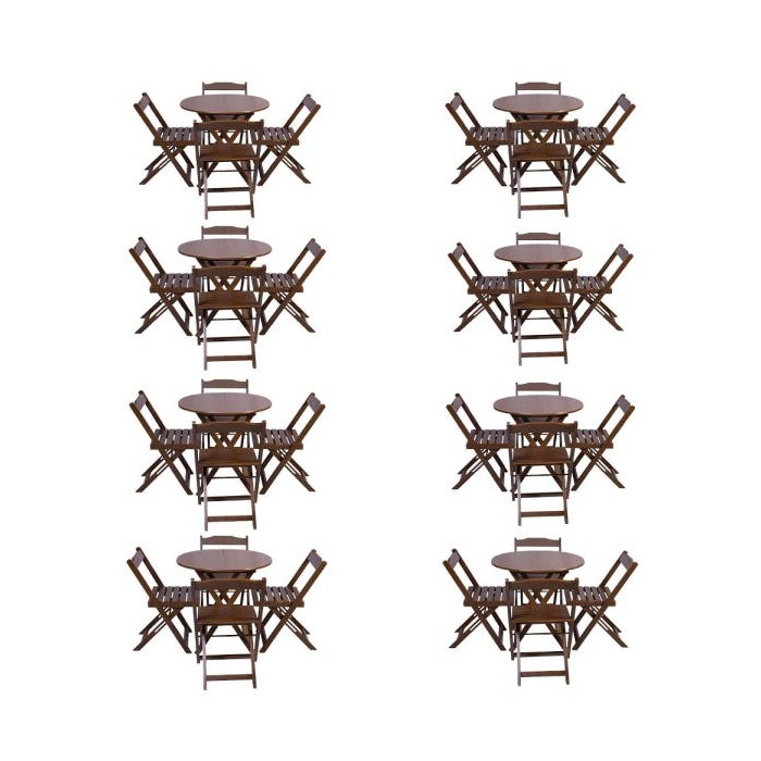 Kit 8 Jogos de Mesa Dobrável com 4 Cadeiras Tampo Redondo 70x70 Imbuia