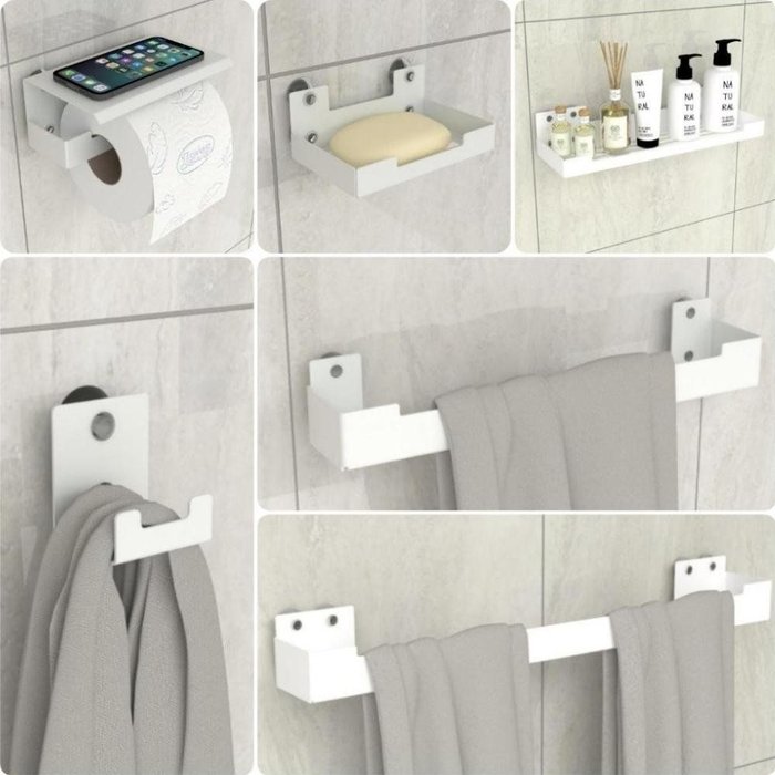 Com um design minimalista, o preferido pelos arquitetos nos últimos tempos, o Kit Acessórios é fabricado utilizando aço inox com acabamento em Pintura Eletrostática Epóxi proporcionando maior durabilidade, resistência e garantindo que não ocorrerá oxidação nem ferrugem.