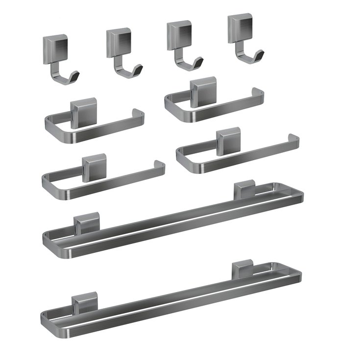 Kit Acessórios para Banheiros 10 Pçs Toalheiro Duplo Luxo Prata Prata
