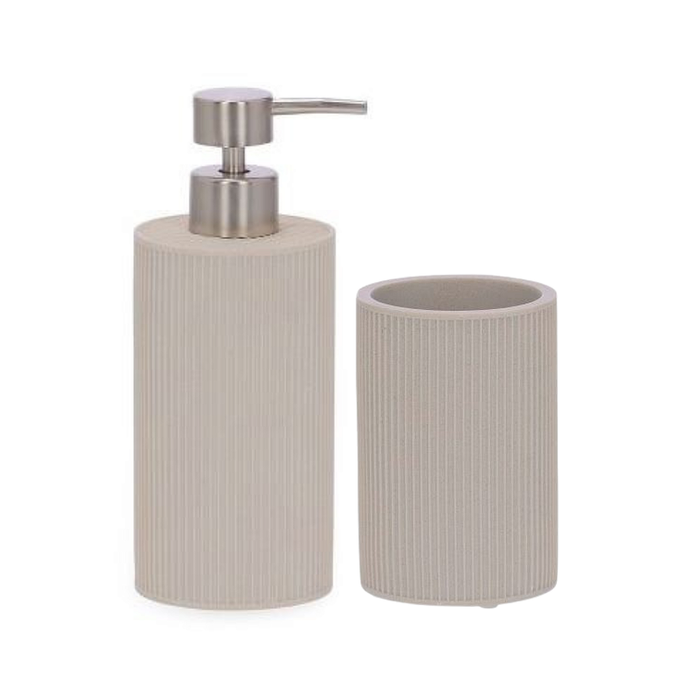 Kit Banheiro Bege Claro Textura Canelada – 2 Peças