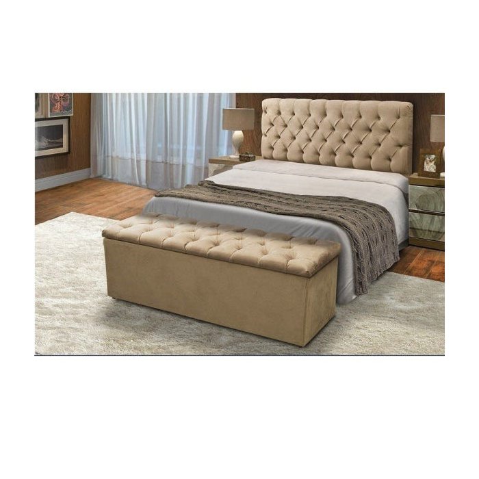 Kit Baú Recamier + Cabeceira Sonho Casal Suede Bege