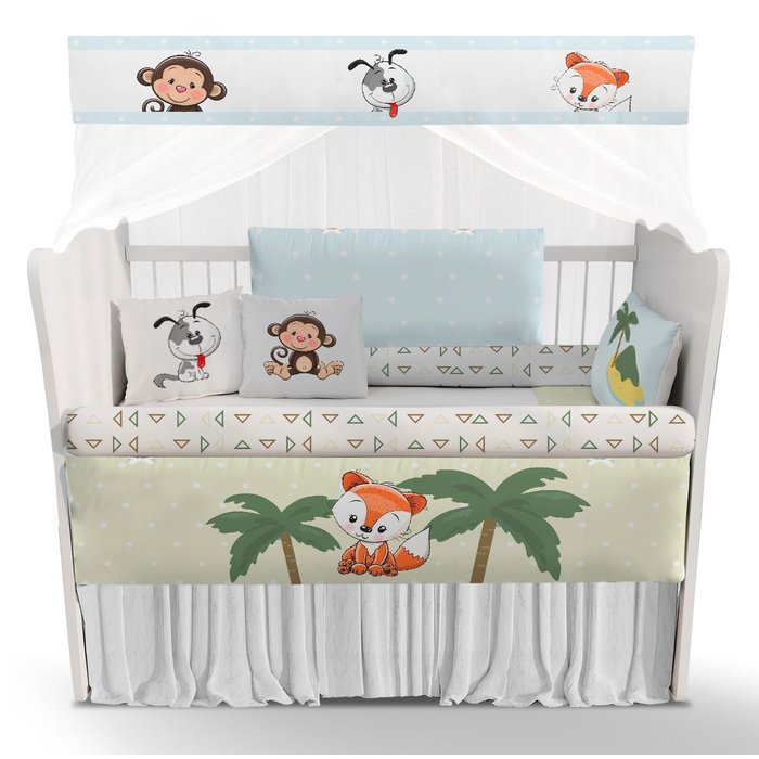 Kit Berço Enxoval de Bebê Safari Mapa Mundi Raposa