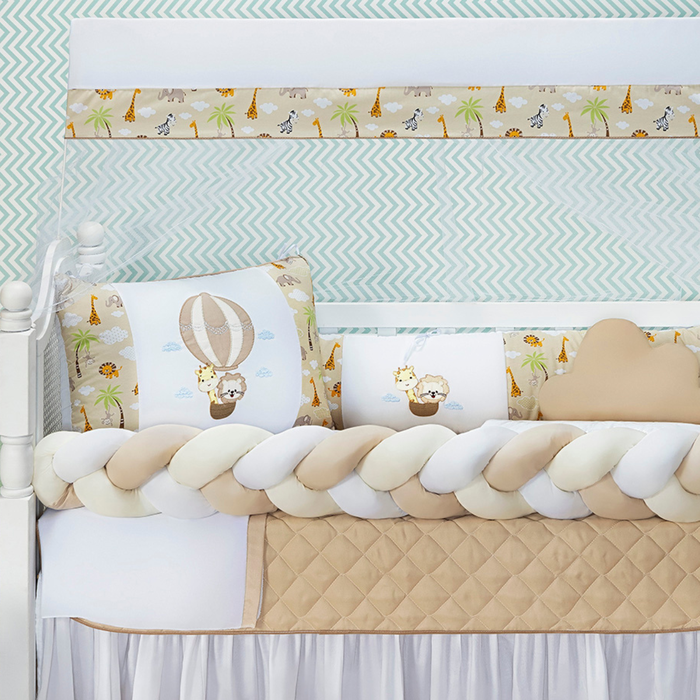 Nosso Kit Berço Safari para Menino vem com 11 peças completas, estampa fofa de bichinhos, acabamento impecável e ainda acompanha uma naninha linda! Ideal para quem busca conforto, proteção e um toque especial na decoração do berço.