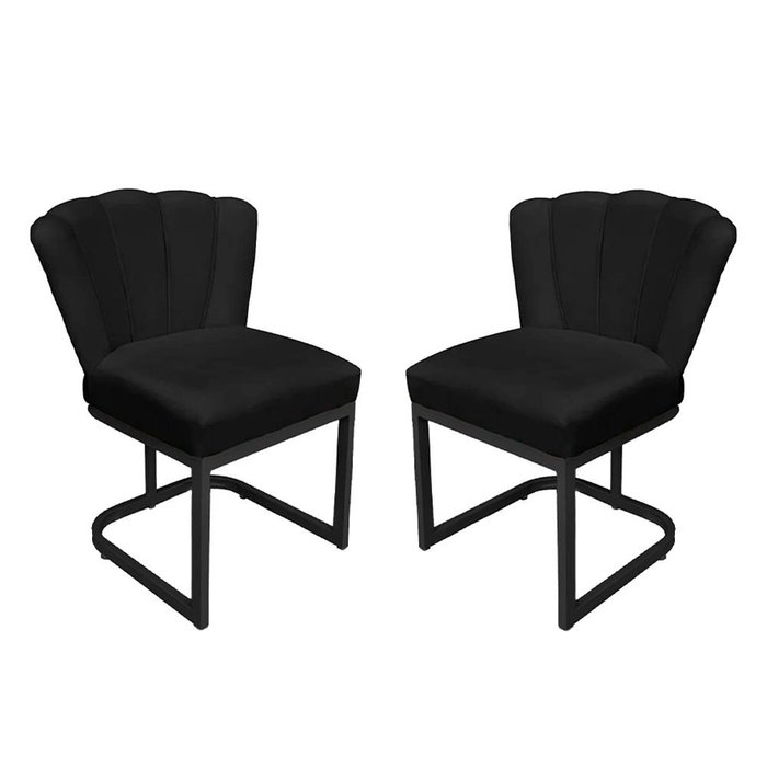 Kit Cadeira Pétala Veludo Preto Base de Ferro Preta - Belliv Decor