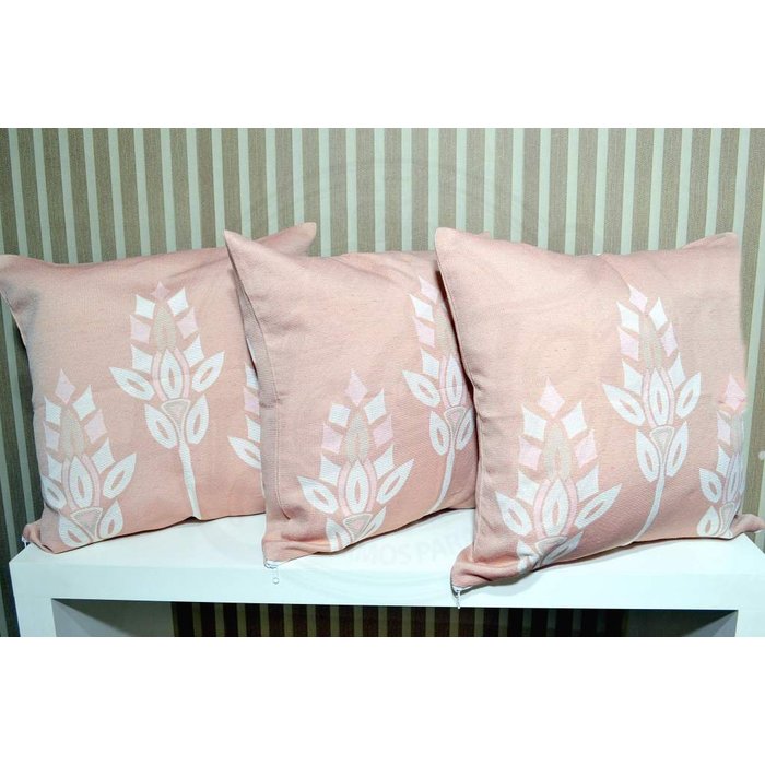 Kit Capas de Almofadas Rústico Dupla Face 3 Peças - Emily Arte & Tear Kit Capa de Almofada palha e rose