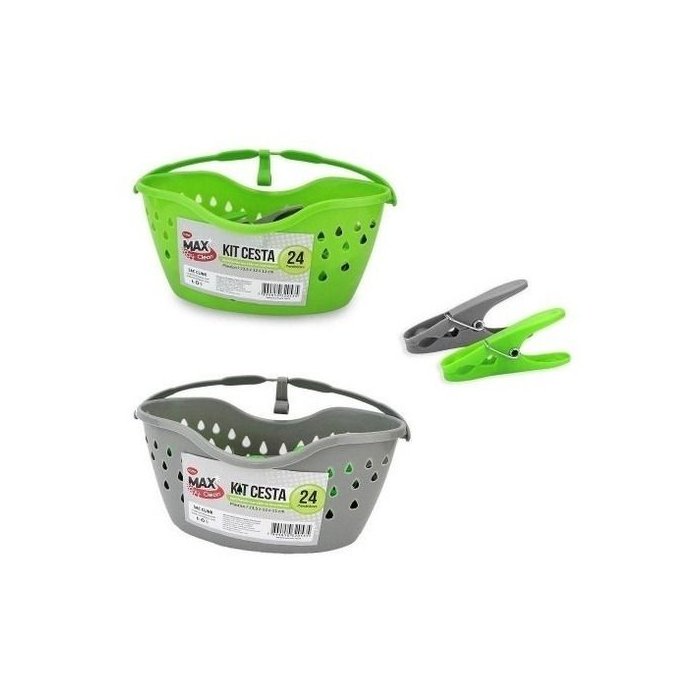 Kit Cesta Cinza e 24 Prendedores de Plástico-CLINK