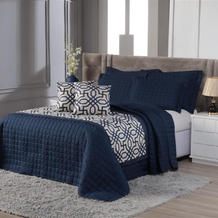 Kit Cobre Leito Premium Bordado Dupla Face com Porta-travesseiro – King Azul