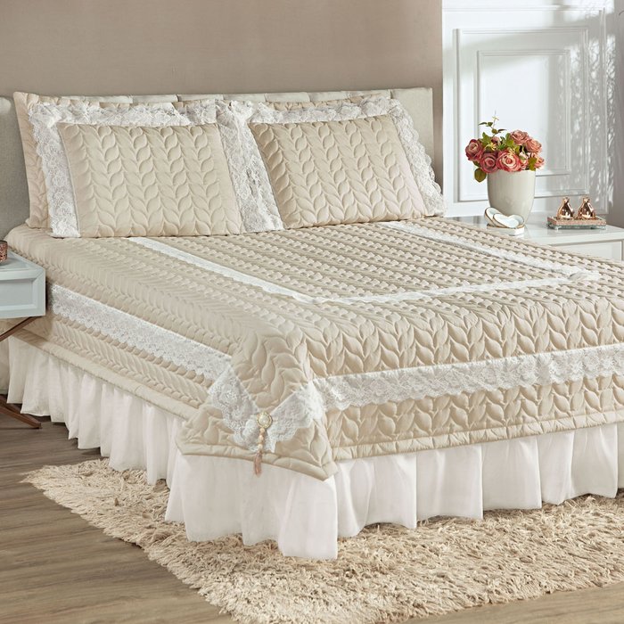 Kit Colcha Madalene Super King Micropercal 200 Fios 5 Peças - Bege