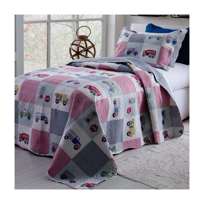 Kit Colcha Patchwork Rozac Solteiro 2 peças Teen Trucks Estampado
