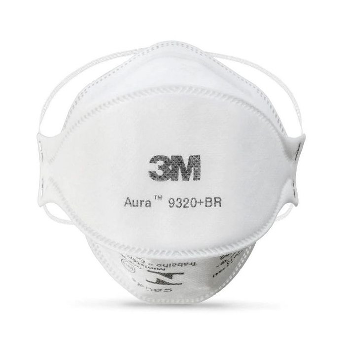 Máscara descartável Aura 9320 da 3M é uma opção eficaz na proteção das vias respiratórias contra poeiras, névoas e fumos.